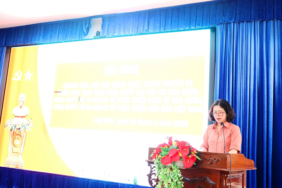 Tại đây, các đại biểu là Ủy viên cấp ủy các chi bộ, đảng bộ cơ sở trực thuộc đã được nghe các báo cáo viên chủ chốt của xã gồm: đồng chí Huỳnh Thị Nguyệt Hồng - Bí thư Đảng ủy, Chủ tịch HĐND xã; đồng chí Nguyễn Phước An - Phó Bí thư Thường trực Đảng ủy xã; đồng chí Nguyễn Trọng Trí - Phó Bí thư, Chủ tịch UBND xã; đồng chí Nguyễn Thị Cẩm Nang - Trưởng Ban xây dựng Đảng đã truyền đạt những nội dung cốt lõi của Nghị quyết Đại hội đại biểu toàn quốc lần thứ XIV của Đảng; Chương trình hành động thực hiện Nghị quyết Đại hội đại biểu toàn quốc lần thứ XIV của Đảng; Báo cáo Chính trị của Ban Chấp hành Trung ương Đảng khoá XIII tại Đại hội Đại hội đại biểu toàn quốc lần thứ XIV của Đảng; Báo cáo một số vấn đề lý luận và thực tiễn về công cuộc đổi mới theo định hướng xã hội chủ nghĩa trong 40 năm qua ở Việt Nam; Báo cáo tổng kết 15 năm thi hành Điều lệ Đảng (2011-2025) và đề xuất định hướng bổ sung, sửa đổi Điều lệ Đảng; Nghị quyết số 79-NQ/TW ngày 06/01/2026 của Bộ Chính trị về phát triển kinh tế nhà nước; Nghị quyết số 80-NQ/TW ngày 07/01/2026 của Bộ Chính trị về phát triển văn hóa Việt Nam.