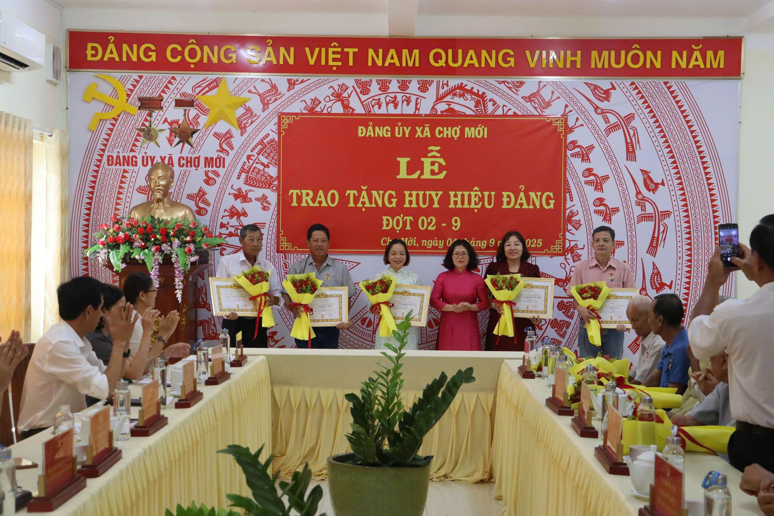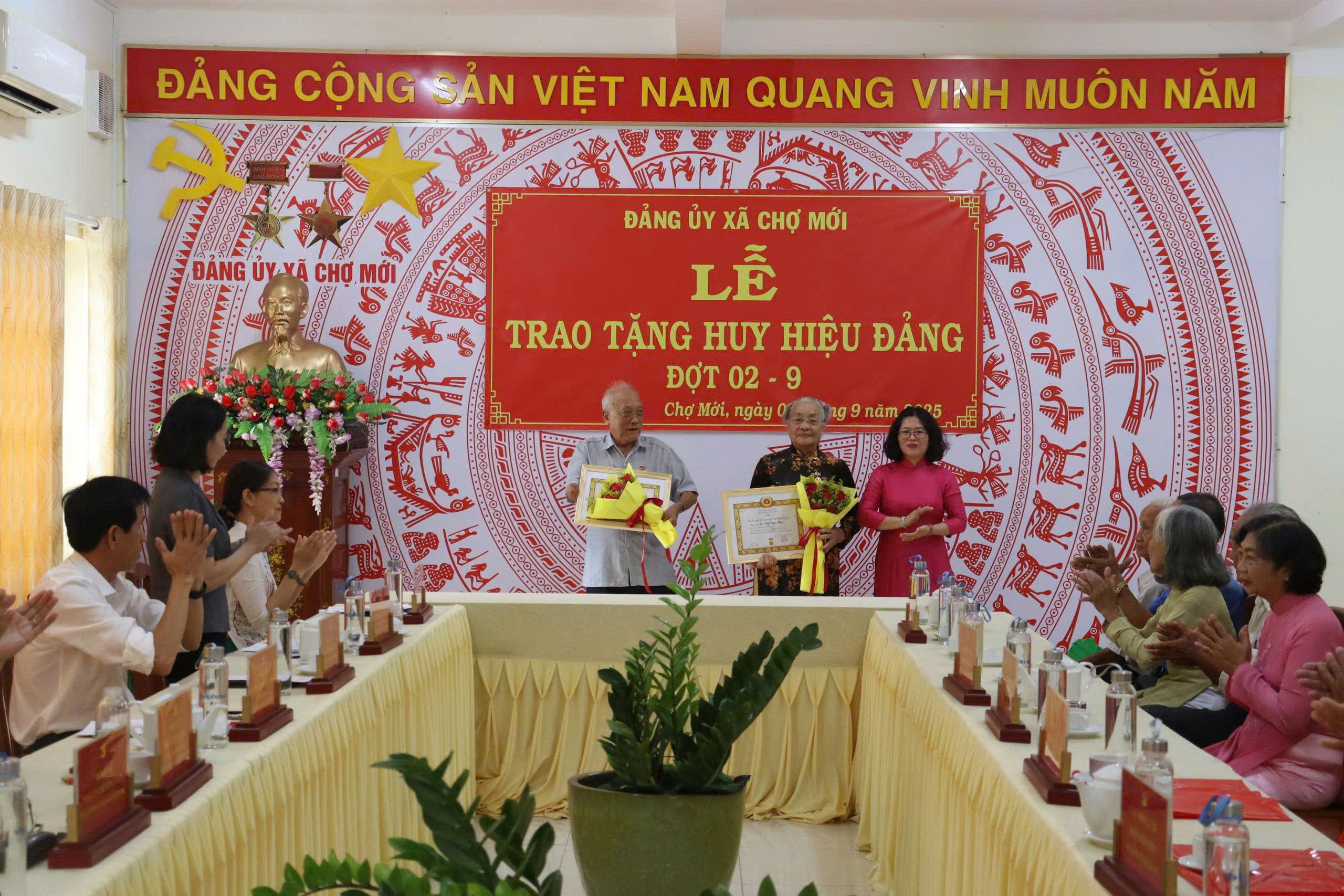 Đợt này, Chợ Mới có 20 đồng chí cao niên tuổi Đảng được nhận Huy hiệu; trong đó có 9 đồng chí 30 năm tuổi Đảng, 2 đồng chí 40 năm, 6 đồng chí 45 năm, 1 đồng chí 50 năm, 1 đồng chí 60 năm và 1 đồng chí 65 năm tuổi Đảng.