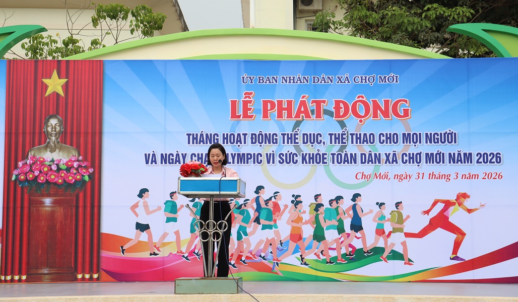Sáng ngày 31/3/2026, UBND xã Chợ Mới tổ chức Lễ Phát động Ngày chạy Olympic năm 2026 Vì sức khoẻ cộng đồng - Vì an ninh Tổ quốc thu hút sự tham gia đông đảo của cán bộ, công chức, viên chức, lực lượng vũ trang, đoàn viên thanh niên và Nhân dân trên địa bàn xã. Tham dự có đại diện lãnh đạo các phòng ban, ngành, đoàn thể xã.