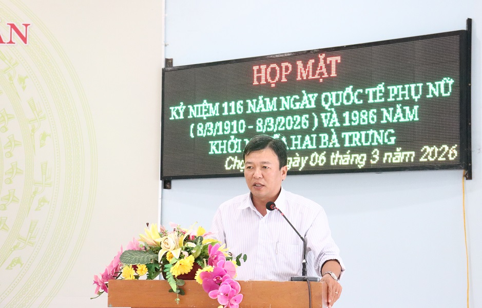 Phát biểu tại buổi họp mặt, ông Huỳnh Thanh Tuấn - Phó Chủ tịch UBND xã đã ghi nhận và biểu dương những đóng góp quan trọng của phụ nữ xã nhà trong thời gian qua. Đồng chí nhấn mạnh, phụ nữ Chợ Mới luôn phát huy truyền thống đoàn kết, năng động, sáng tạo, tích cực tham gia các phong trào thi đua yêu nước, các cuộc vận động do Hội và địa phương phát động; hoàn thành tốt nhiệm vụ chuyên môn và xây dựng gia đình hạnh phúc, tiến bộ. Phó Chủ tịch UBND xã bày tỏ và tin tưởng trong thời gian tới, cán bộ, hội viên phụ nữ sẽ tiếp tục không ngừng học tập, rèn luyện, nâng cao trình độ, bản lĩnh chính trị; chủ động tham gia xây dựng Đảng, chính quyền, góp phần xây dựng xã Chợ Mới ngày càng phát triển.