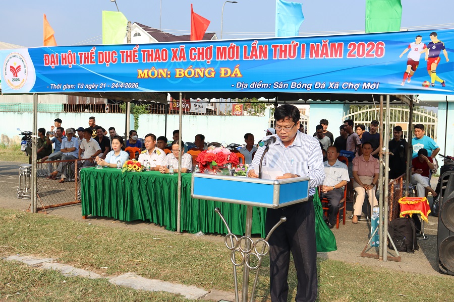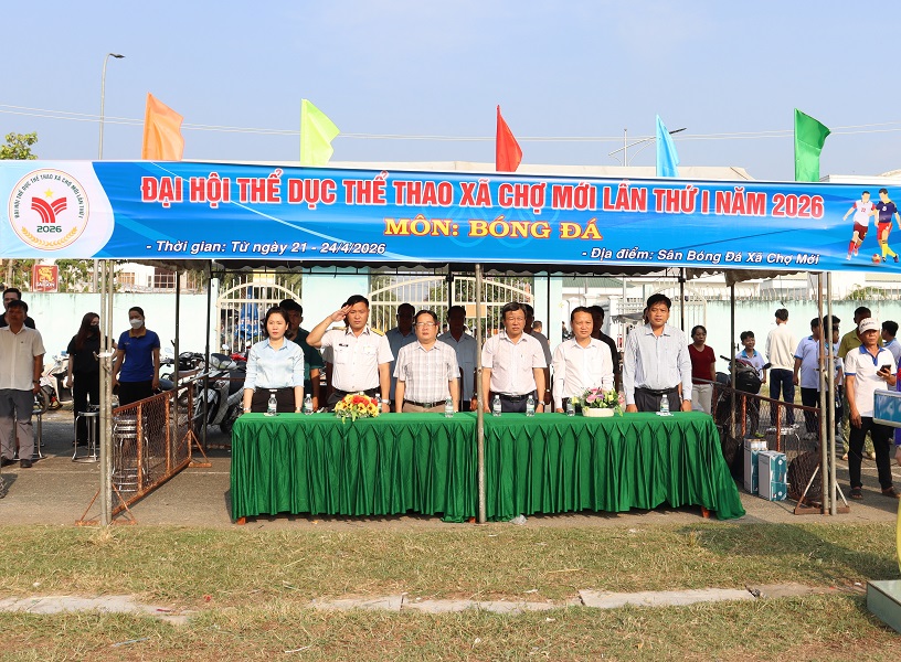 Sáng ngày 21/4, UBND xã Chợ Mới tổ chức Lễ khai mạc môn Bóng đá 7 người nằm trong khuôn khổ Đại hội Thể dục thể thao xã Chợ Mới lần thứ I năm 2026. Đến dự có ông Huỳnh Thanh Tuấn - Phó Chủ tịch UBND xã Chợ Mới.
