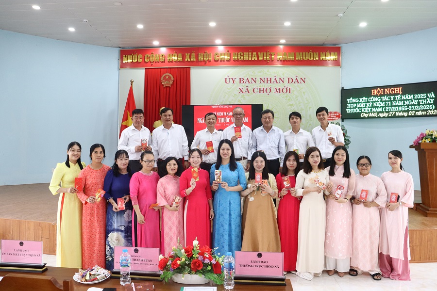 Sáng 27/2, Trạm Y tế xã Chợ Mới tổ chức tổng kết công tác y tế năm 2025 và họp mặt kỷ niệm 71 năm Ngày Thầy thuốc Việt Nam (27/2/1955 - 27/2/2026). Tham dự có ông Huỳnh Thanh Tuấn - Phó Chủ tịch UBND xã, cùng toàn thể cán bộ, viên chức, người lao động Trạm Y tế xã Chợ Mới.