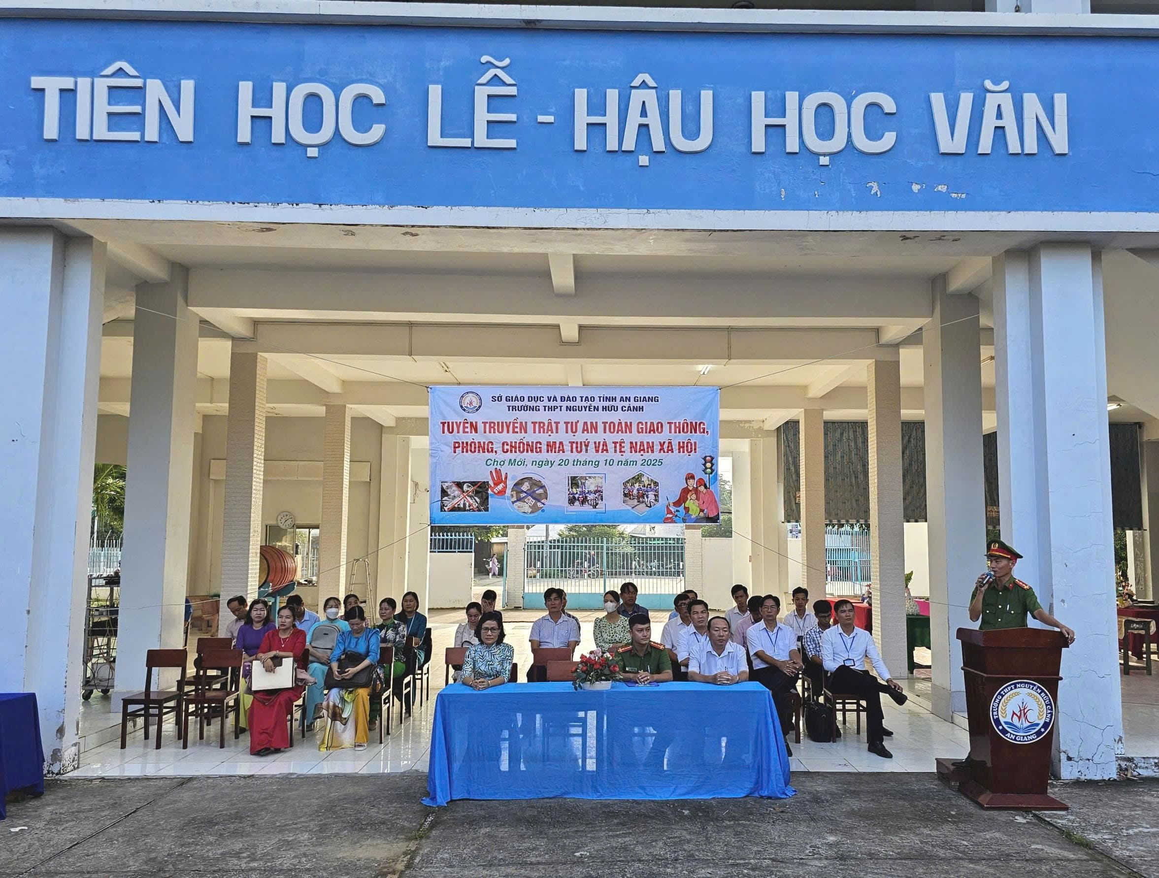 Sáng ngày 20/10, Công an xã Chợ Mới phối hợp cùng Trường THPT Nguyễn Hữu Cảnh tổ chức tuyên truyền trật tự an toàn giao thông và phòng chống ma tuý và tệ nạn xã hội với sự tham gia của cán bộ, giáo viên, học sinh nhà trường.