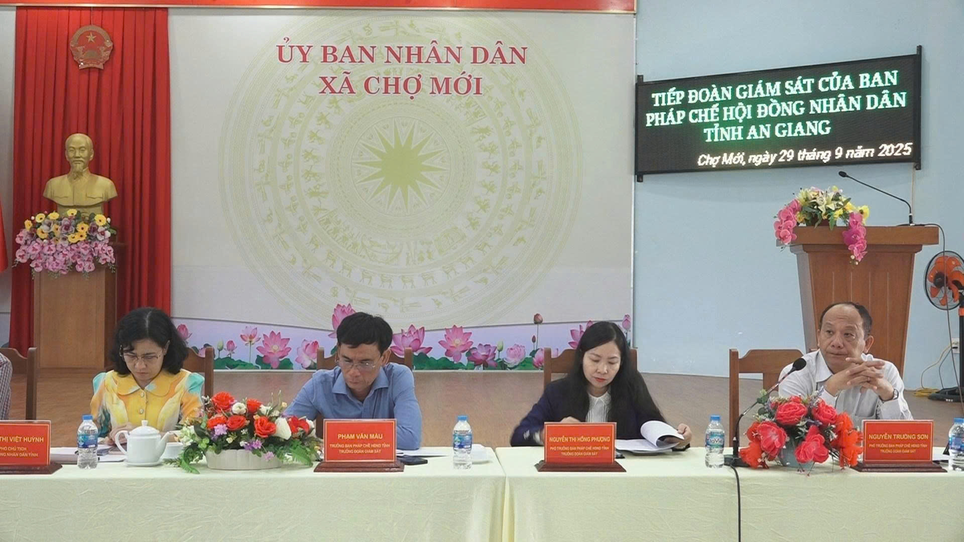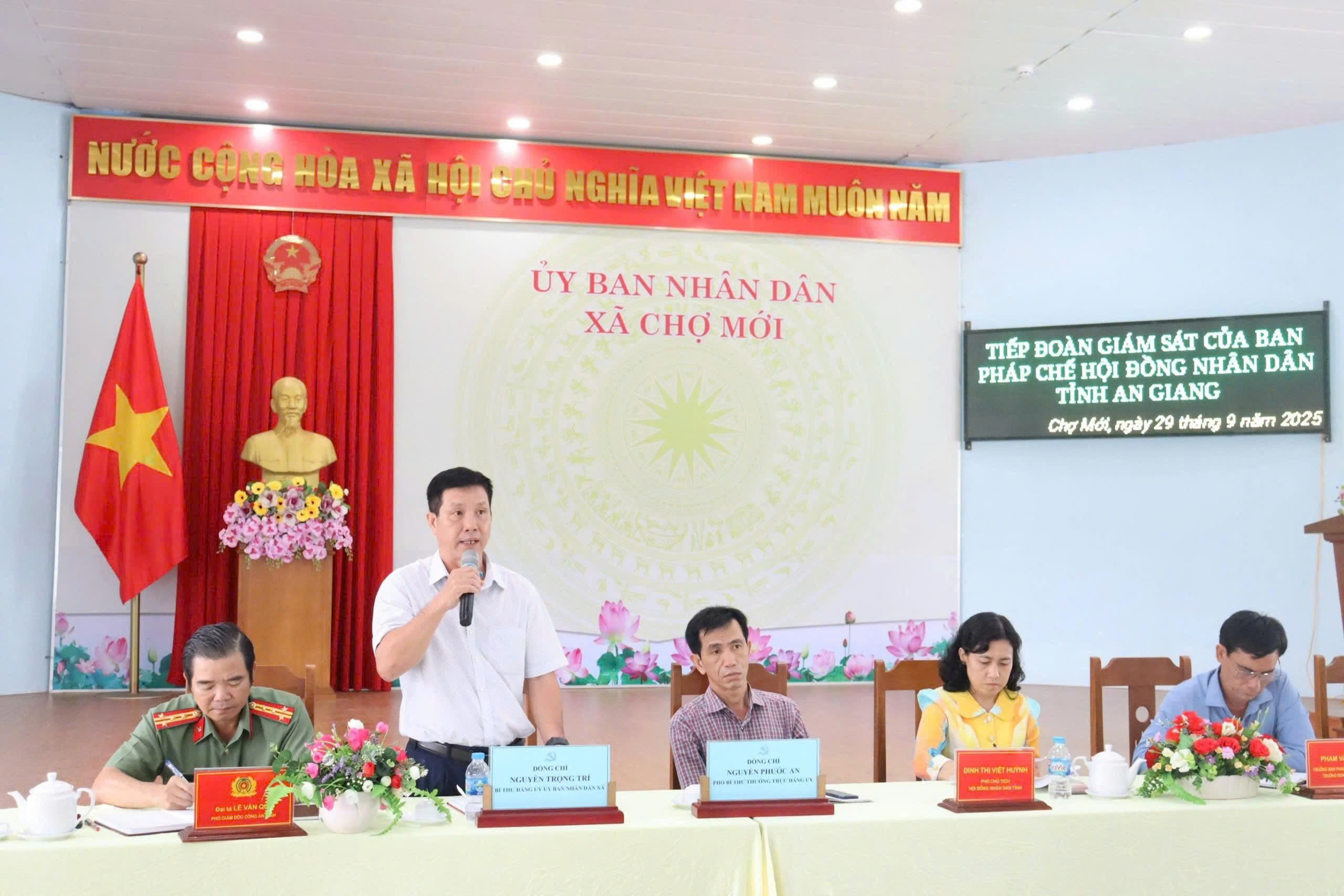 Sáng ngày 29/9, Phó Chủ tịch HĐND tỉnh An Giang Đinh Thị Việt Huỳnh dẫn đầu Đoàn Giám sát đã có buổi giám sát tại xã Chợ Mới về chuyên đề “Việc thực hiện các quy định pháp luật về tổ chức và hoạt động của Công an cấp xã trên địa bàn tỉnh An Giang”. Tiếp đoàn có đồng chí Nguyễn Phước An - Phó Bí thư Thường trực Đảng uỷ xã, ông Nguyễn Trọng Trí - Chủ tịch UBND xã Chợ Mới.