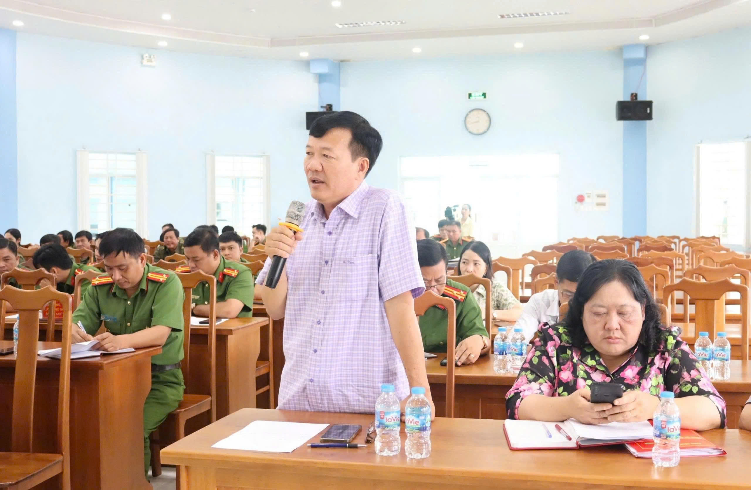 Bên cạnh những kết quả đạt được, đại diện CBCS, lực lượng Bảo vệ an ninh trật tự cơ sở và lãnh đạo Công an xã đã thảo luận, trao đổi những thuận lợi, khó khăn trong quá trình thực hiện nhiệm vụ chuyên môn như: trang thiết bị xuống cấp; chưa có kho tạm giữ phương tiện, phòng tạm giữ người theo quy định; đường truyền hệ thống đôi lúc chậm cập nhật ảnh hưởng đến thời gian trả kết quả cho người dân; việc cấp biển số xe và giấy chứng nhận đăng ký xe còn chậm do phụ thuộc vào đơn vị đóng biển số và Cục Cảnh sát Giao thông chậm chưa phân bổ phôi; nguồn kinh phí hoạt động thường xuyên chưa đảm bảo đáp ứng yêu cầu triển khai nhiệm vụ chuyên môn; chế độ hỗ trợ lực lượng đảm bảo an ninh trật tự còn thấp.