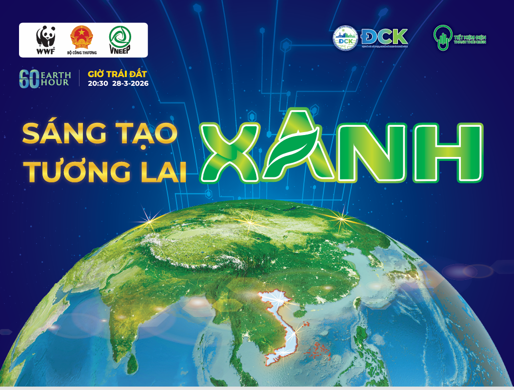 Phong trào “Toàn dân sử dụng năng lượng tiết kiệm và hiệu quả và hưởng ứng Chiến dịch Giờ Trái đất năm 2026” sẽ chính thức diễn ra từ 20 giờ 30 phút đến 21 giờ 30 phút Thứ Bảy, ngày 28 tháng 3 năm 2026 với thông điệp “Sáng tạo xanh – Tương lai xanh”. Chiến dịch kêu gọi sử dụng điện đồng hành cùng Chính phủ nhằm nâng cao ý thức, thực hành sử dụng năng lượng tiết kiệm, hiệu quả và hưởng ứng Giờ Trái đất năm 2026.