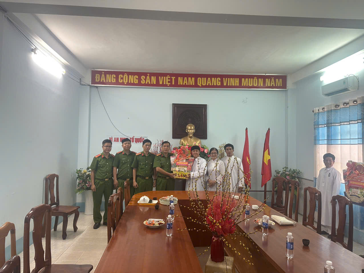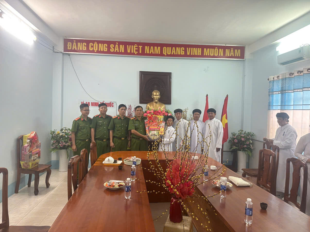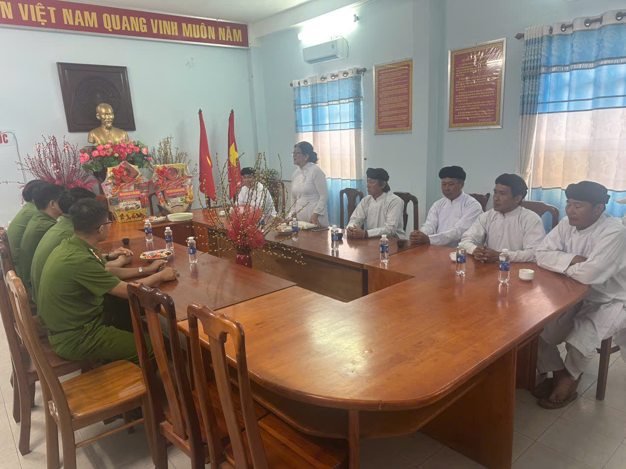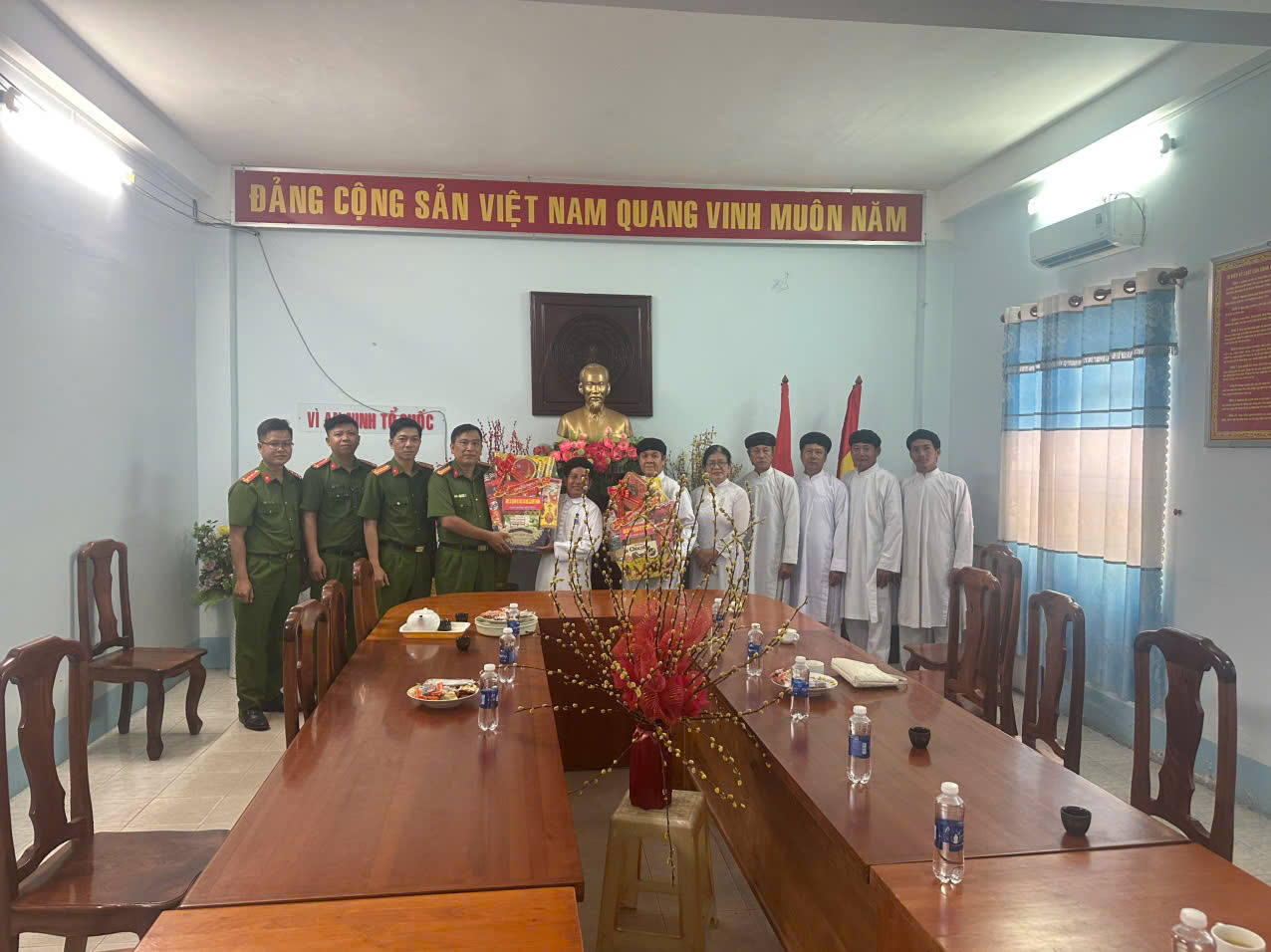 Ban Cai quản Họ đạo Cao Đài trên địa bàn xã thăm và chúc Tết Công an xã Chợ Mới