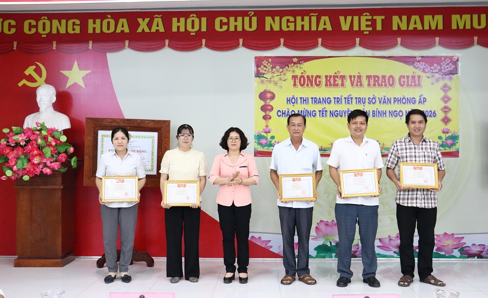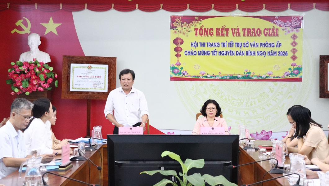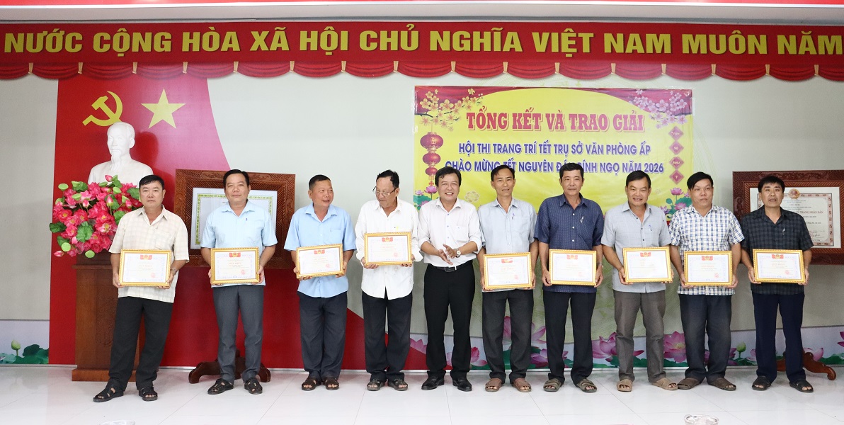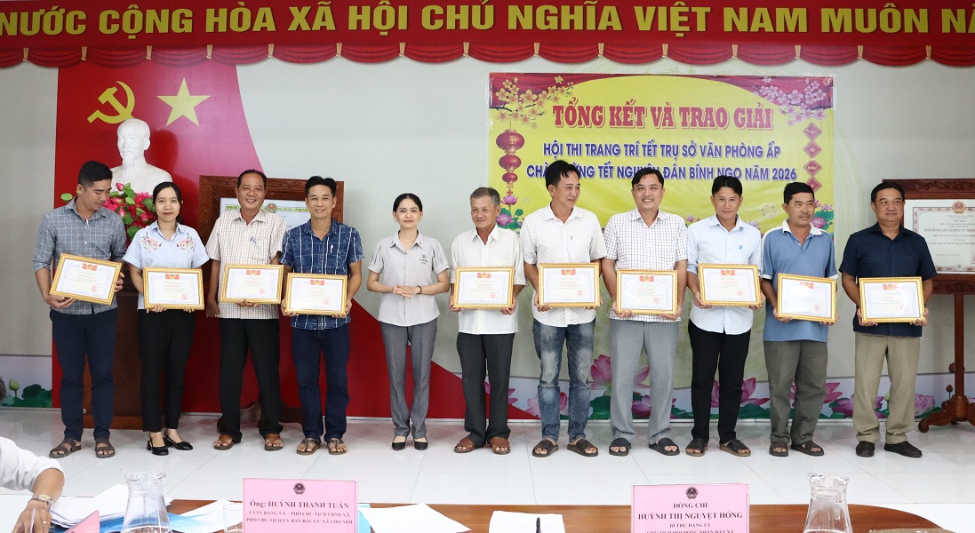 Chiều ngày 11/02/2026, Trung tâm Dịch vụ Tổng hợp xã Chợ Mới phối hợp cùng Phòng Văn hóa - Xã hội xã tổ chức tổng kết và trao giải Hội thi trang trí Tết trụ sở Văn phòng ấp chào mừng Tết Nguyên đán Bính Ngọ năm 2026. Tham dự có đồng chí Huỳnh Thị Nguyệt Hồng - Bí thư Đảng ủy, Chủ tịch HĐND xã; ông Huỳnh Thanh Tuấn - Phó Chủ tịch UBND xã, Trưởng Ban Tổ chức hội thi; ông Nguyễn Hữu Tín - Trưởng Phòng Văn hóa - Xã hội xã cùng thành viên Ban Tổ chức, Ban Giám khảo và Trưởng Ban nhân dân 24 ấp trên địa bàn xã.