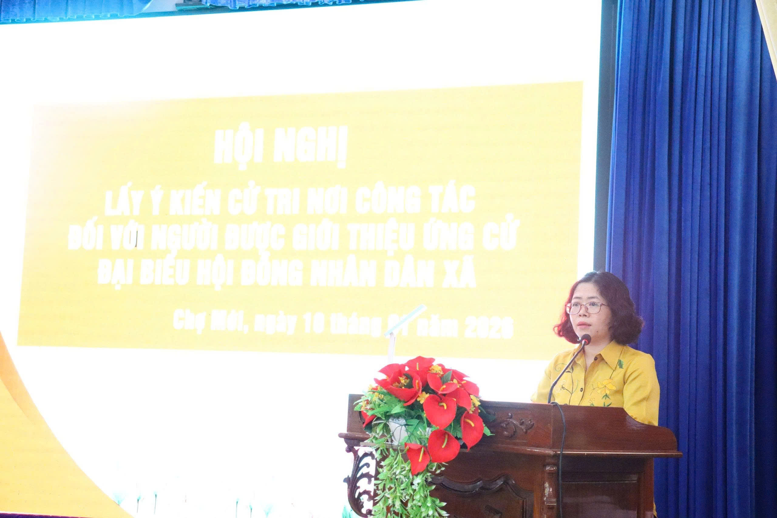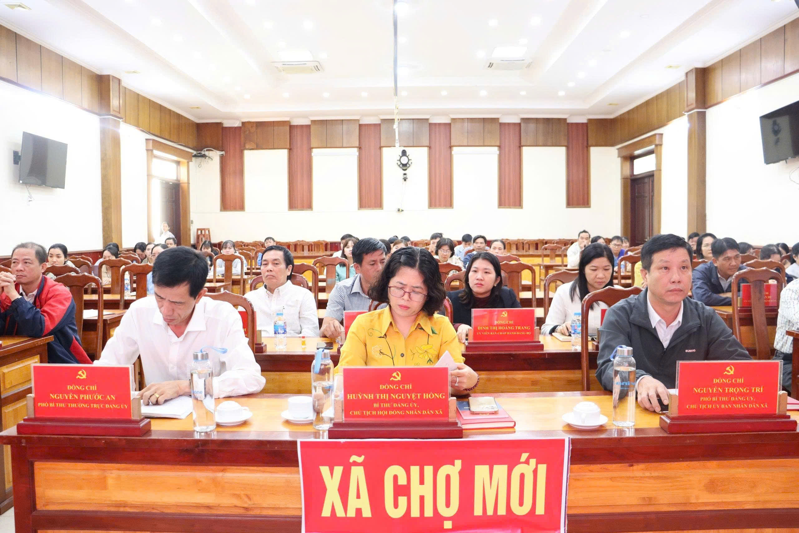Sáng 10/1/2026, Đảng ủy - HĐND - UBND - Ủy ban MTTQ Việt Nam xã Chợ Mới tổ chức hội nghị lấy ý kiến cử tri nơi công tác đối với người được giới thiệu ứng cử đại biểu HĐND xã khóa II, nhiệm kỳ 2026 - 2031. Tham dự có đồng chí Huỳnh Thị Nguyệt Hồng - Bí thư Đảng ủy, Chủ tịch HĐND xã; đồng chí Nguyễn Phước An - Phó Bí thư Thường trực Đảng ủy xã; ông Nguyễn Trọng Trí - Chủ tịch UBND xã.