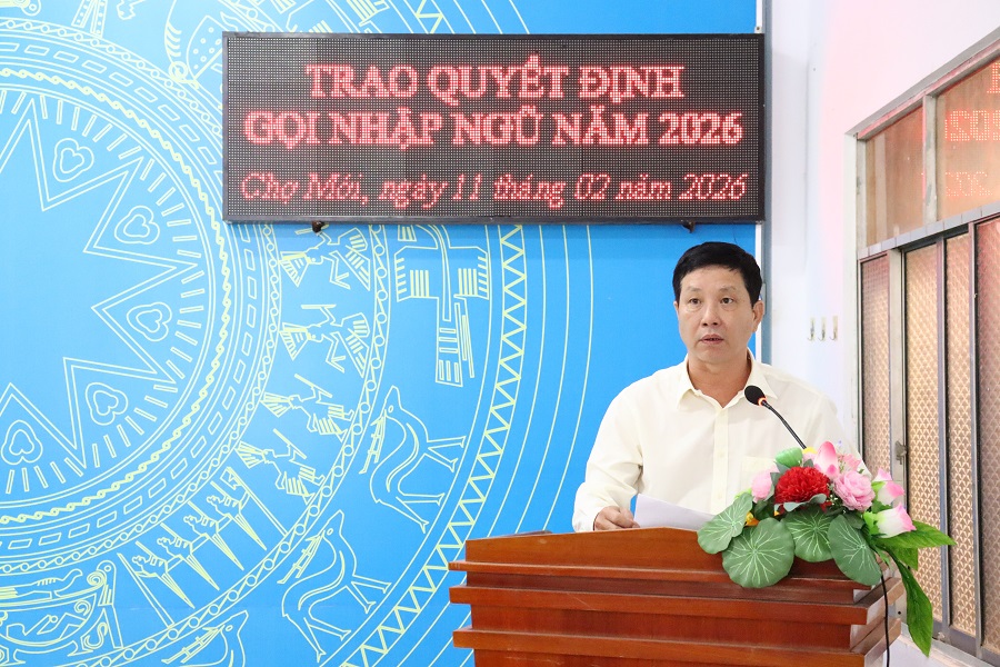 Tại buổi lễ đã công bố các Quyết định của Chủ tịch UBND xã về việc gọi công dân nhập ngũ và thực hiện nghĩa vụ tham gia Công an nhân dân năm 2026. Theo đó, Chợ Mới được giao chỉ tiêu tuyển chọn và gọi nhập ngũ 62 công dân, trong đó có 43 công dân thực hiện nghĩa vụ quân sự giao về 2 đơn vị (Lữ đoàn 950/Quân khu 9, Trung đoàn 892/Bộ Chỉ huy Quân sự tỉnh) và 19 công dân thực hiện nghĩa vụ tham gia Công an nhân dân.