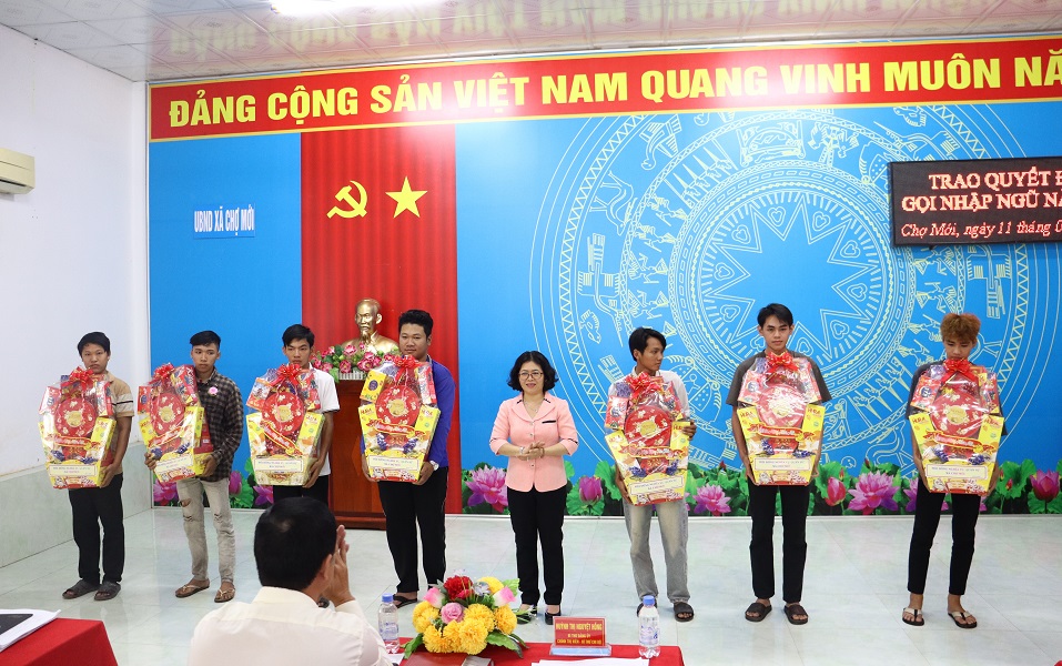 Dịp này, Hội đồng nghĩa vụ Quân sự xã Chợ Mới đã gửi quà Tết đến các công dân được nhận Quyết định./.
